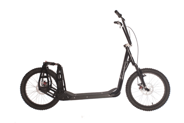 Our award winning Dirt Dawg is captivating kids and dog owners alike. Featuring a riding deck big enough for both feet, powerful mountain bike brakes, and a suspension fork, the Dirt Dawg isn’t afraid to mark its territory. It’s no wonder this all terrain scooter is the choice for both adventurous kids and beginner musher’s.